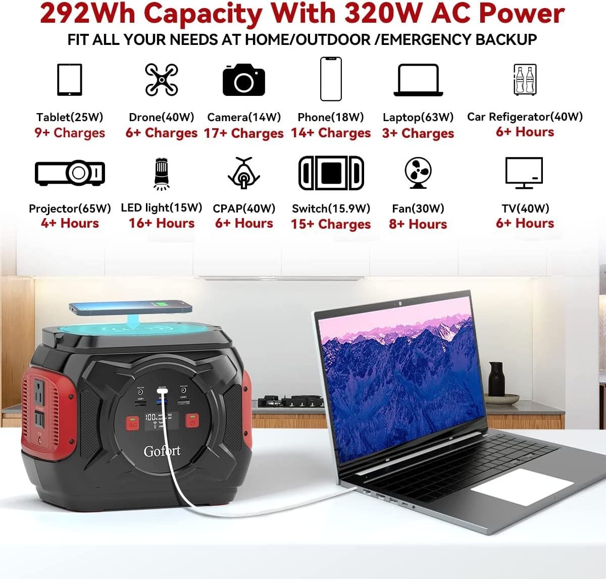 GOFORT 320W Portable Power Station 292Wh Wireless Charger 15W PD 100W & 100W 18V Portable Solar Panel Included Compatible with Phones Laptops Tablet f GOFORT 320W Portable Power Station 292Wh Wireless Charger 15W PD 100W & 100W 18V Portable Solar Panel Included Compatible with Phones Laptops Tablet f GOFORT 320W Portable Power Station 292Wh Wireless Charger 15W PD 100W & 100W 18V Portable Solar Panel Included Compatible with Phones Laptops Tablet f