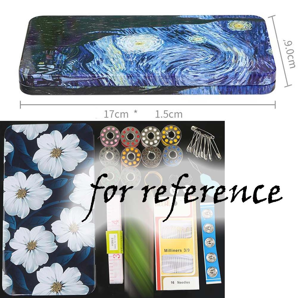 Tin Box Sewing Machine Kit 10 Colors Thread Spools Sewing Kits Sewing Supplies Kit for Home Travel Office