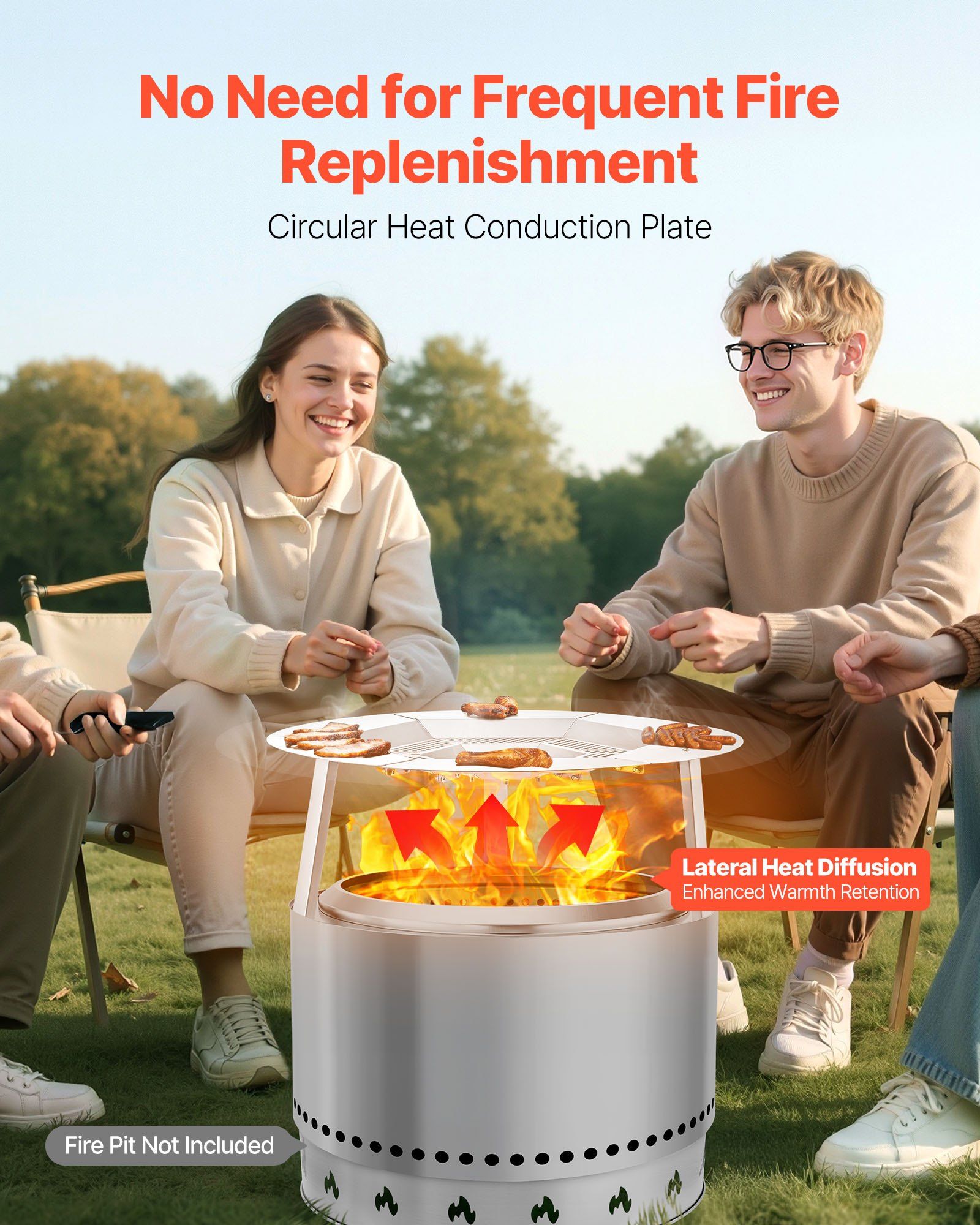 1.Enhance Heating Efficiency: Our heat deflector avoids vertical heat loss, spreading warmth over a larger area. It reduces firewood usage and extends burn time, making your bonfire more efficient, comfortable, and energy-saving