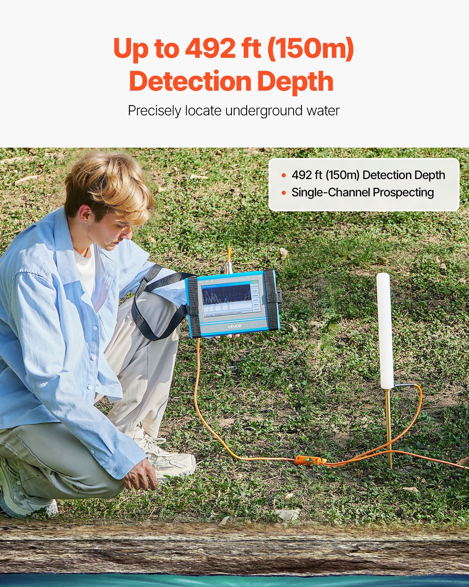 1.High-Precision Detection: VEVOR professional underground water detector supports up to 492ft (150m) detection depth. Combined with its single-channel prospecting system, it ensures focused and accurate detection, helping you quickly and precisely locate underground water