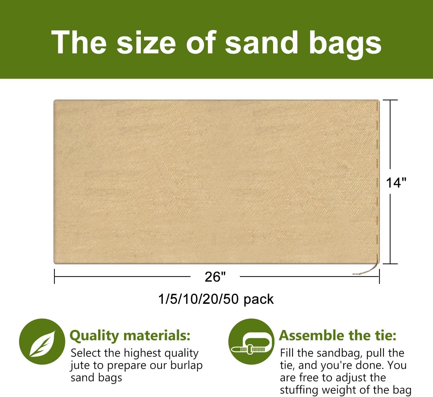 Add stability and safety to your outdoor activities! This jute sandbag with tie, made of natural jute, is durable and suitable for a variety of outdoor applications, including wind and water protection. The tie-down design makes it easy to tie and secure. It is widely used in gardening, fencing, tents, and other applications, ensuring stability and peace of mind. The perfect combination of environmentally friendly materials and practical functions makes it an essential tool for every outdoor activity.