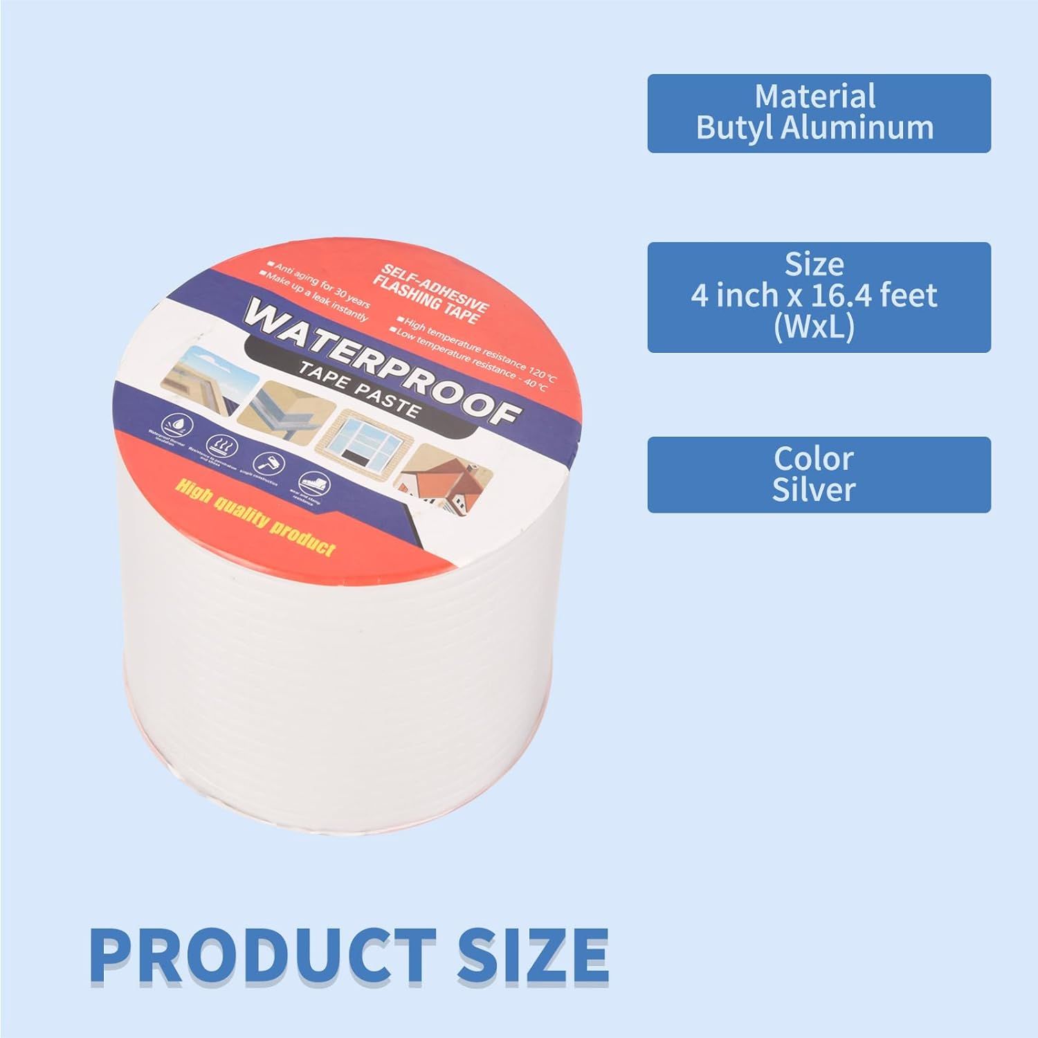 Waterproof Tape for Leaks Aluminum Butyl Tape with Adhesive for RV Repair, Glass Repairs, Air Mattress Patch, Window Caulking, Boat Sealing