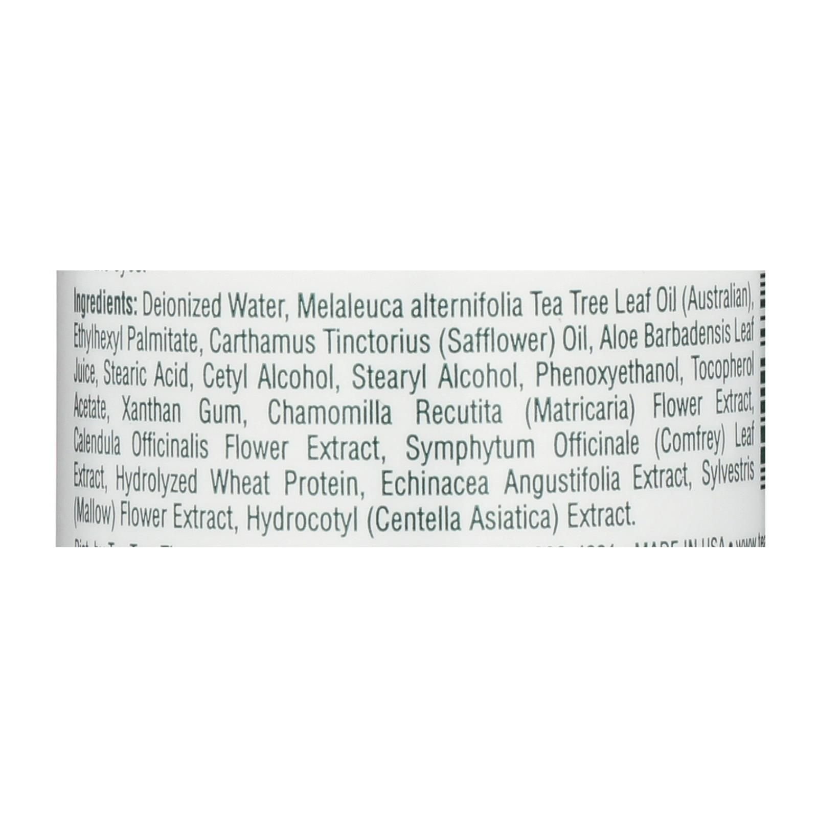 Tea tree therapy antiseptic cream with tea tree oil and herbal extracts is formulated to help soothe minor skin irritations. It features deionized water, tea tree leaf oil, aloe leaf juice, flower extracts and hydrolyzed wheat protein. Every 4 oz. Bottle of tea tree therapy antiseptic cream is made in the u.s.a.
