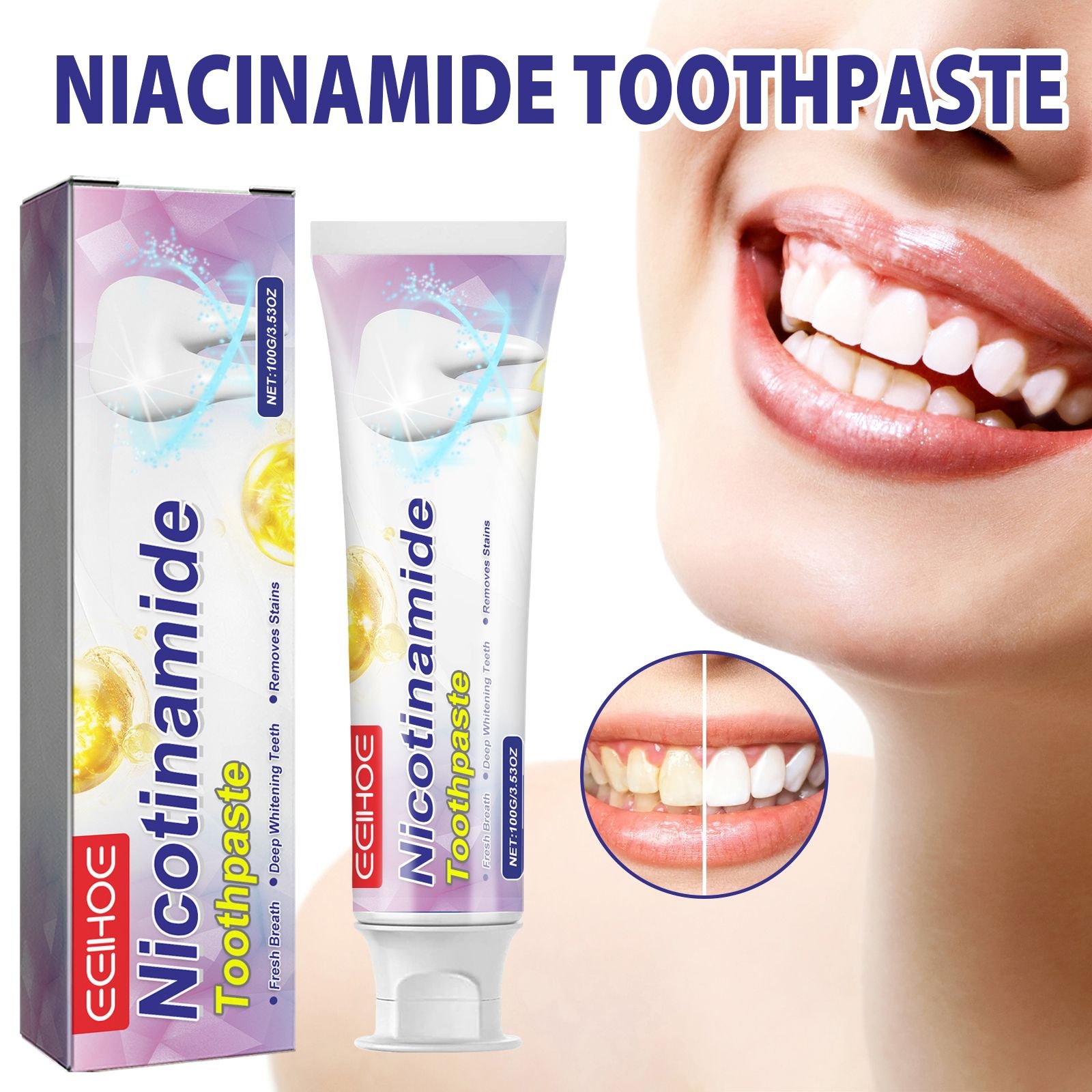 Home > EELHOE Niacinamide Toothpaste, Cool White Toothpaste Freshen Breath Clean Mouth Guard Gum Jianchi Bright White Toothpaste