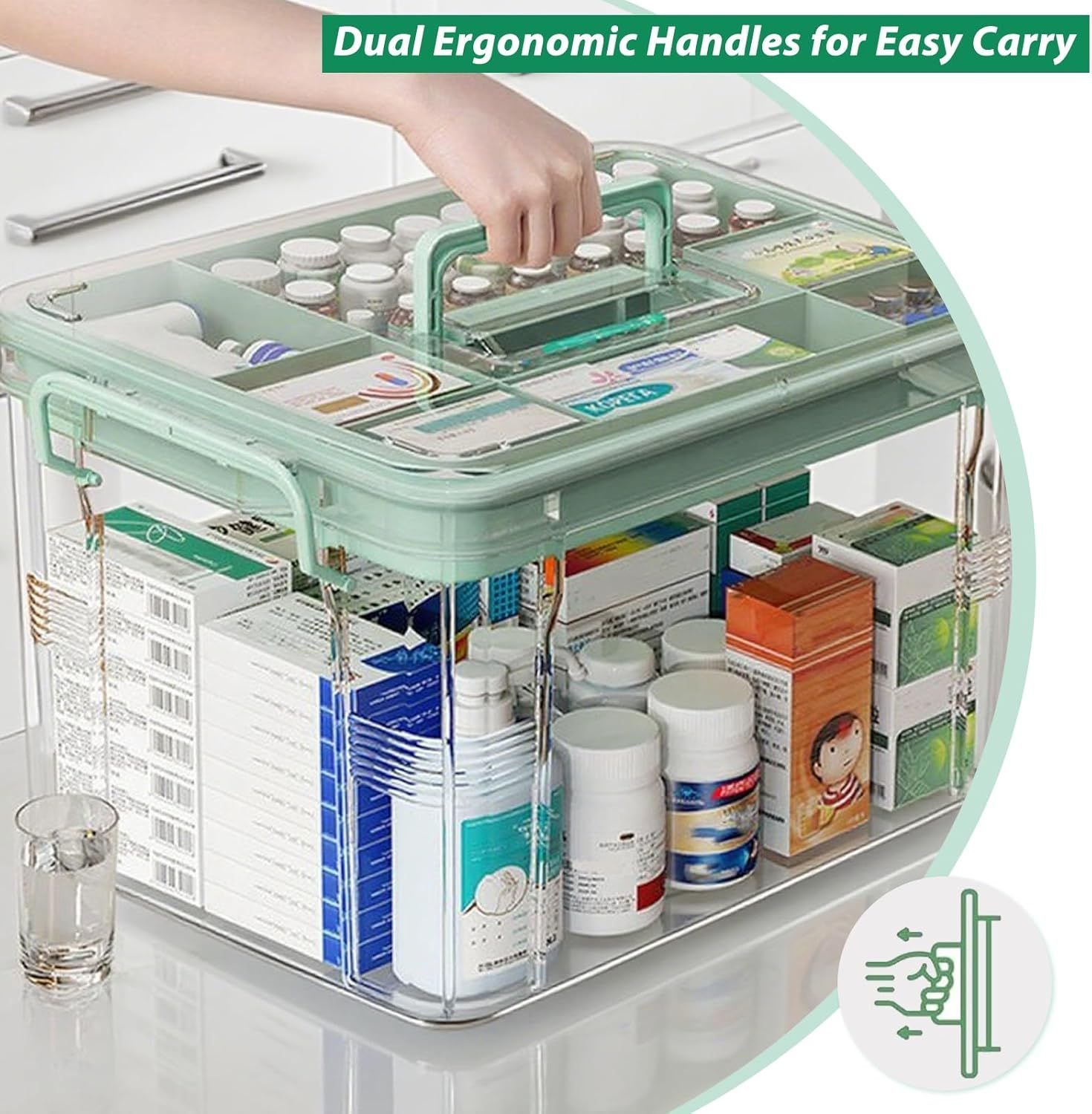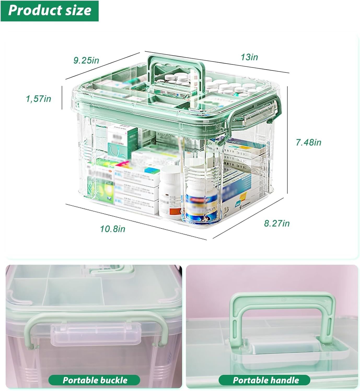Home > 15qt Clear Medicine Organizer Storage Box with Tray, Plastic First Aid Box Empty, Medicine Caddy with Lids Handles,Thickened Medicine Container Chest