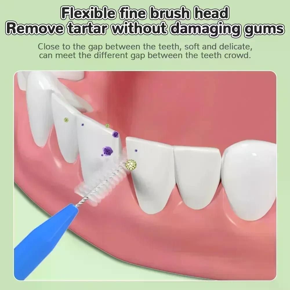 1. The interdental brush enjoys bristles that are soft and delicate and won't harm the gum, and elastic and durable steel wire.