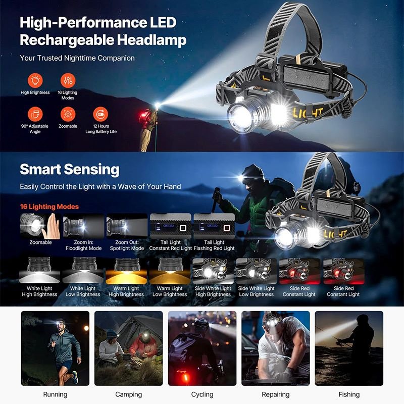 1.Drive away darkness no matter if you are camping, hunting, fishing, hiking, trail running, biking or handling emergencies with this LED headlamp!