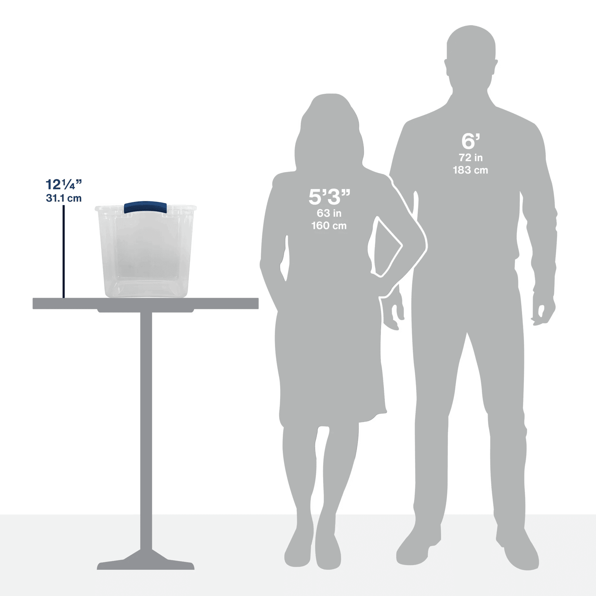 27 Quart Clear Plastic Storage Container with Latch Lid, Blue