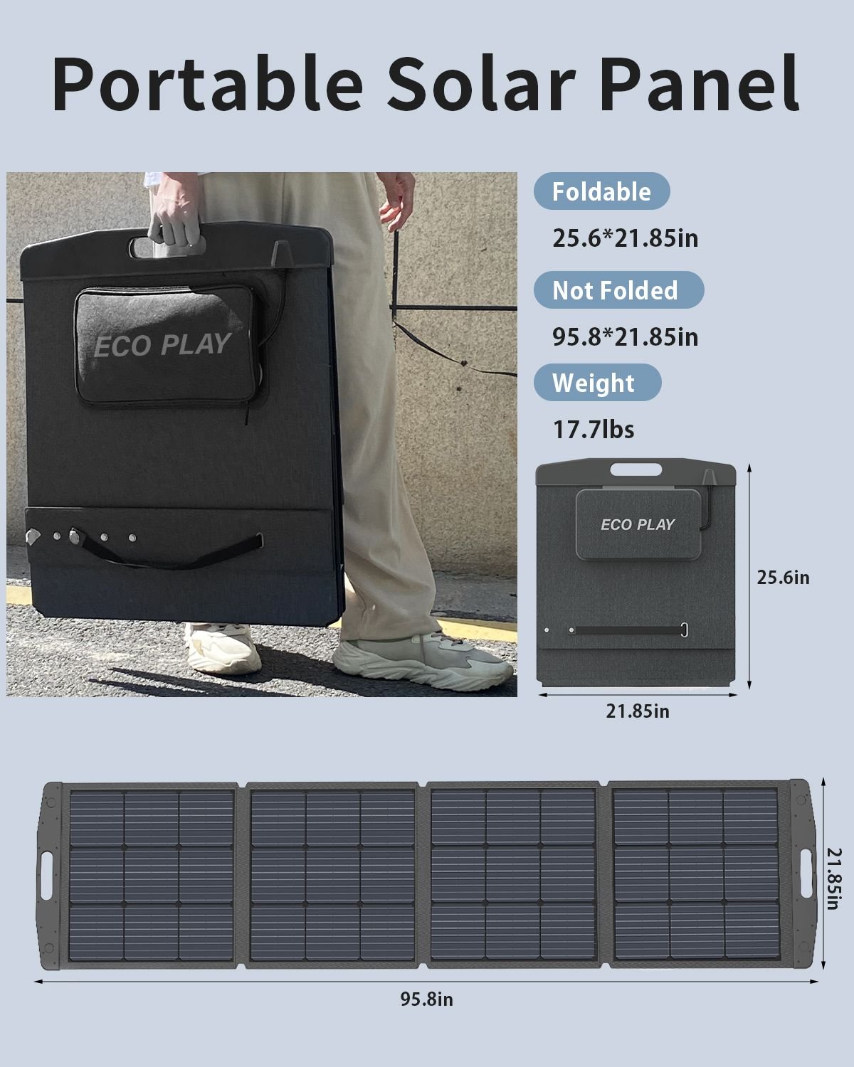 DURABLE & IP67 WATERPROOF: With an IP67 waterproof rating, Eco Play portable solar panels are made for the outdoors and can withstand the elements. ideal for RV camping, off-grid road trip and unexpected power outages.