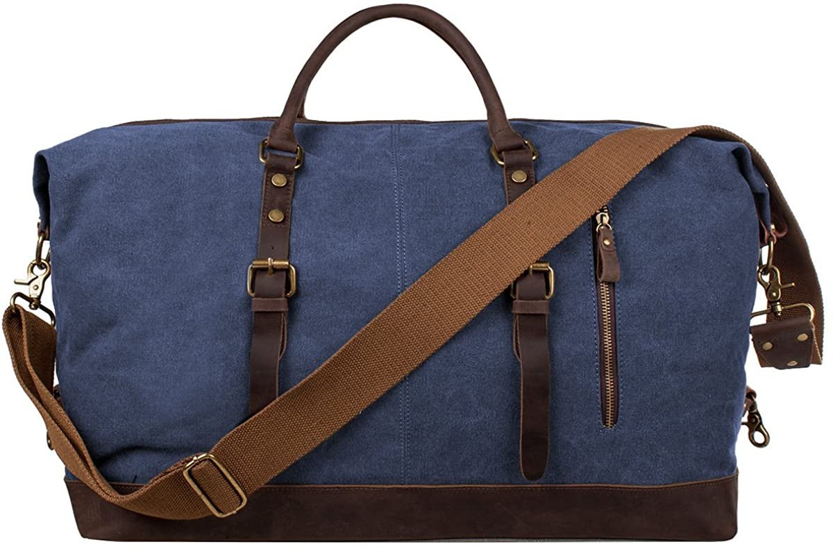 S-ZONE Duffle Bag for Travel 60L Canvas Duffel Bag Carry on Genuine Leather Overnight Weekender Bag for Men S-ZONE Duffle Bag for Travel 60L Canvas Duffel Bag Carry on Genuine Leather Overnight Weekender Bag for Men