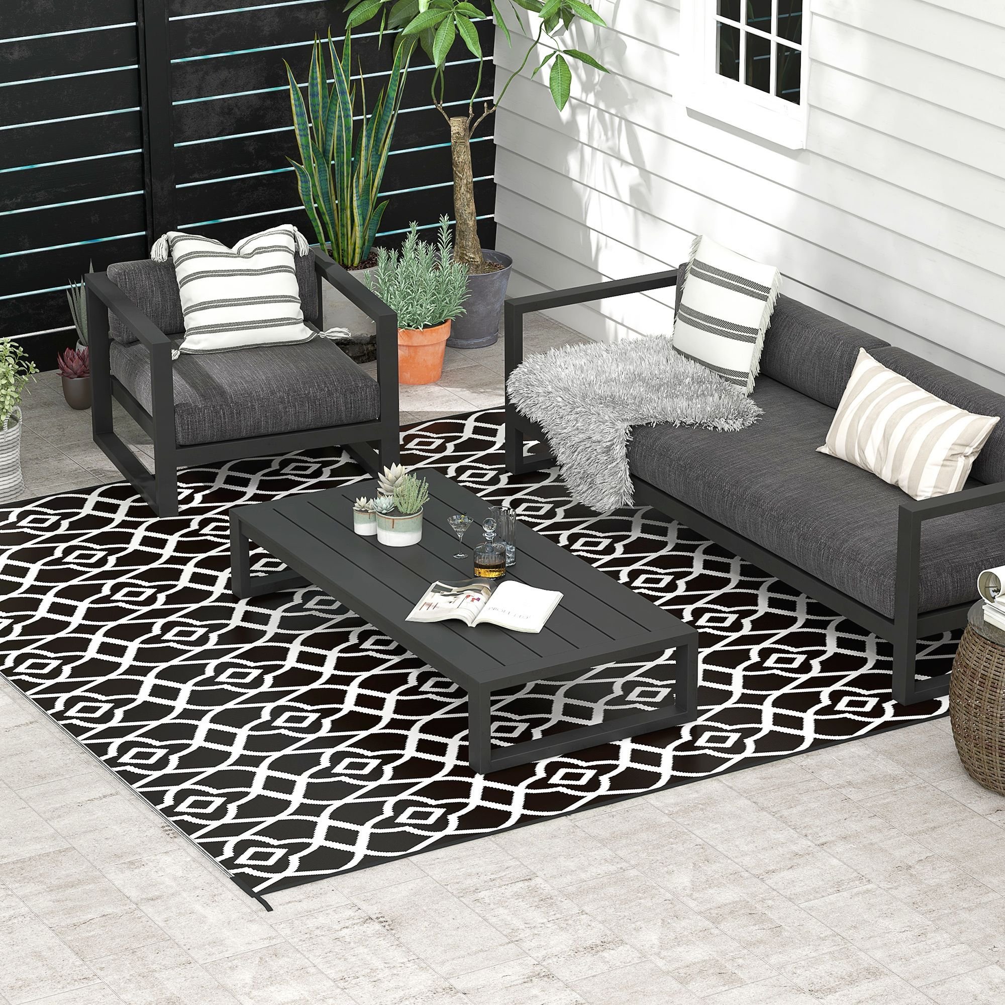 Plastic Outdoor Rug: Our waterproof outdoor rug / RV mat features a reversible pattern that you can flip over for a quick, clean spot with an all new style.