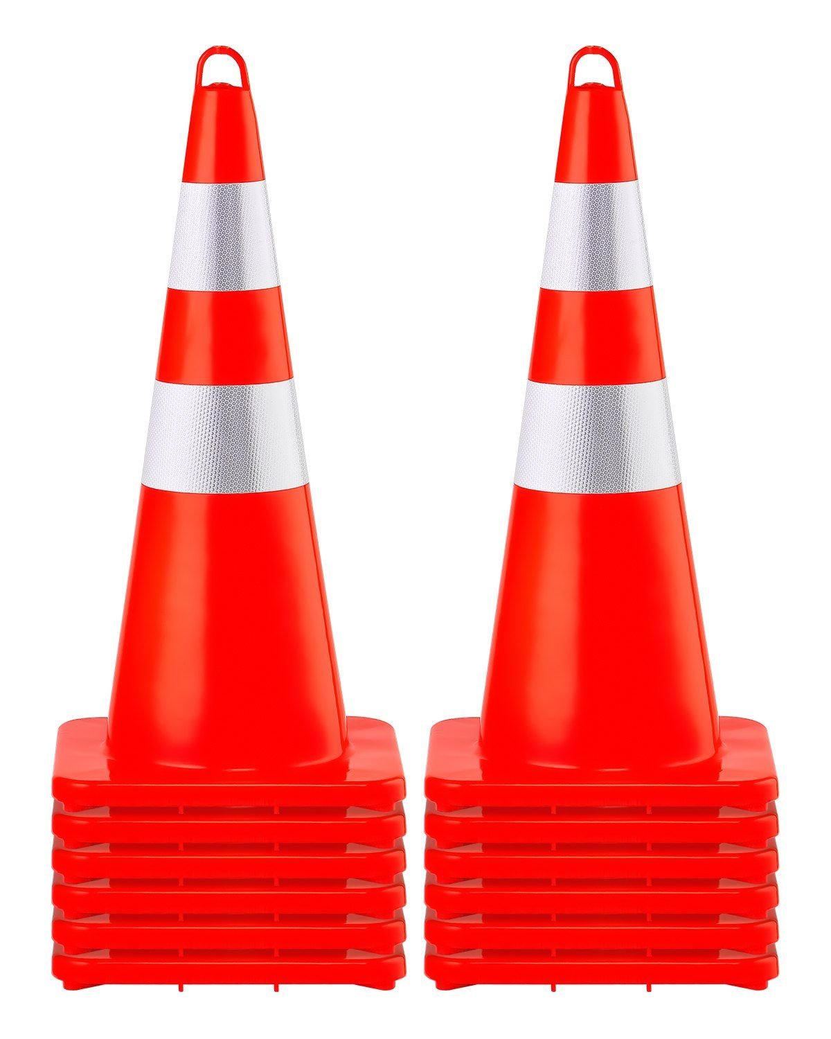 The silver reflective collar is included in our orange construction cones, which are characteristic of 360°C reflections no matter day or night. Therefore, these safety cones are your priority choice for the sake of security.