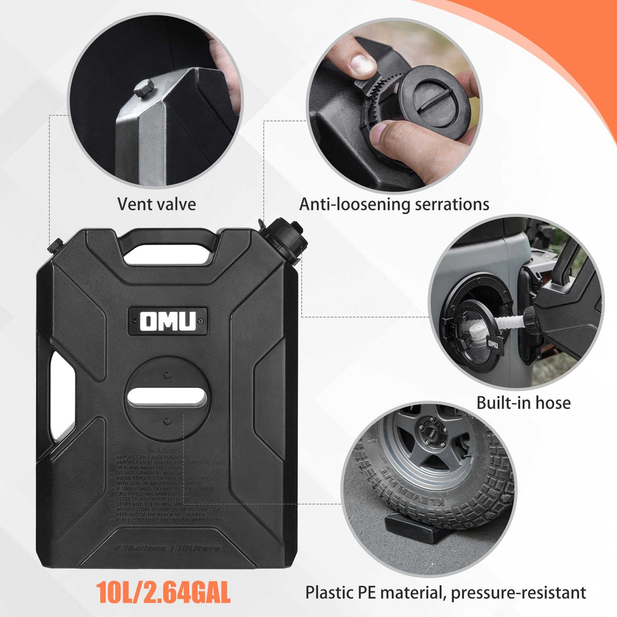 Large Capacity: Store up to 2.64 gallons (10 liters) of gasoline, providing ample fuel for your adventures while ensuring you're always ready for the road ahead.