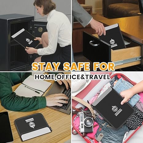 Keep your valuables safe and secure with this 4-pack of fireproof and waterproof document bags. Each bag is designed with a durable fire-resistant material and a strong zipper to protect cash, important documents, passports, and other sensitive items from fire and water damage. Perfect for home, office, or business use, these document bags accommodate both A4 and legal-size papers, making them practical and versatile. Lightweight yet highly protective, they provide peace of mind while storing your essential documents. Ideal for personal, professional, or emergency use.